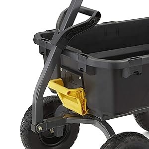 • QUICK-RELEASE DUMPING: Our patented quick-release dumping system allows you to unload with ease while the tight-turning steering makes it easy to maneuver over different terrain